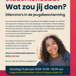 Doe mee aan een inspirerend debat in aansluiting op de landelijke campagne van 2023/2024 ‘Wat zou jij doen?’. Het Instituut voor Sociale Opleidingen en Kenniscentrum Talentontwikkeling van Hogeschool Rotterdam organiseren in samenwerking met Jeugdbescherming Rotterdam Rijnmond een...